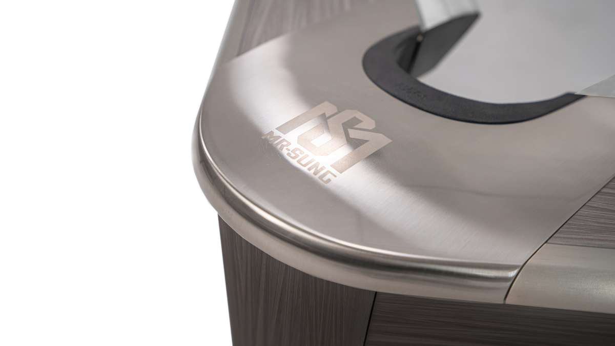 25 mm thick premium Rasson slate, Rasson MAX rubber cushions, and steel & wood support beams ensure optimal playing characteristics and durability. The luxurious wood rail is resistant to water, fire, warping, scratches, and dents. A professional Simonis cloth of your choice is included. MR-SUNG 9 ft.Table