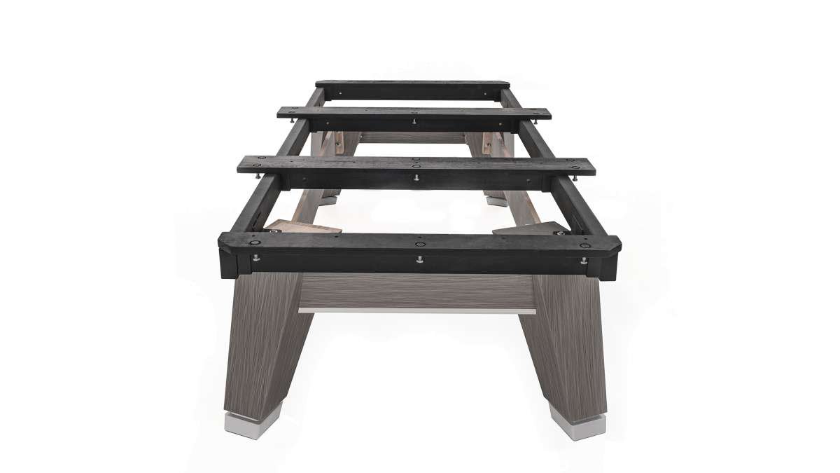 The Acurra billiard table by Rasson features a unique pedestal and legs that resemble an “A” from each side of the table. It is equipped with Rasson’s specially designed and patented SLS (Slate Leveling System) and LLS (Leg Leveling System).
